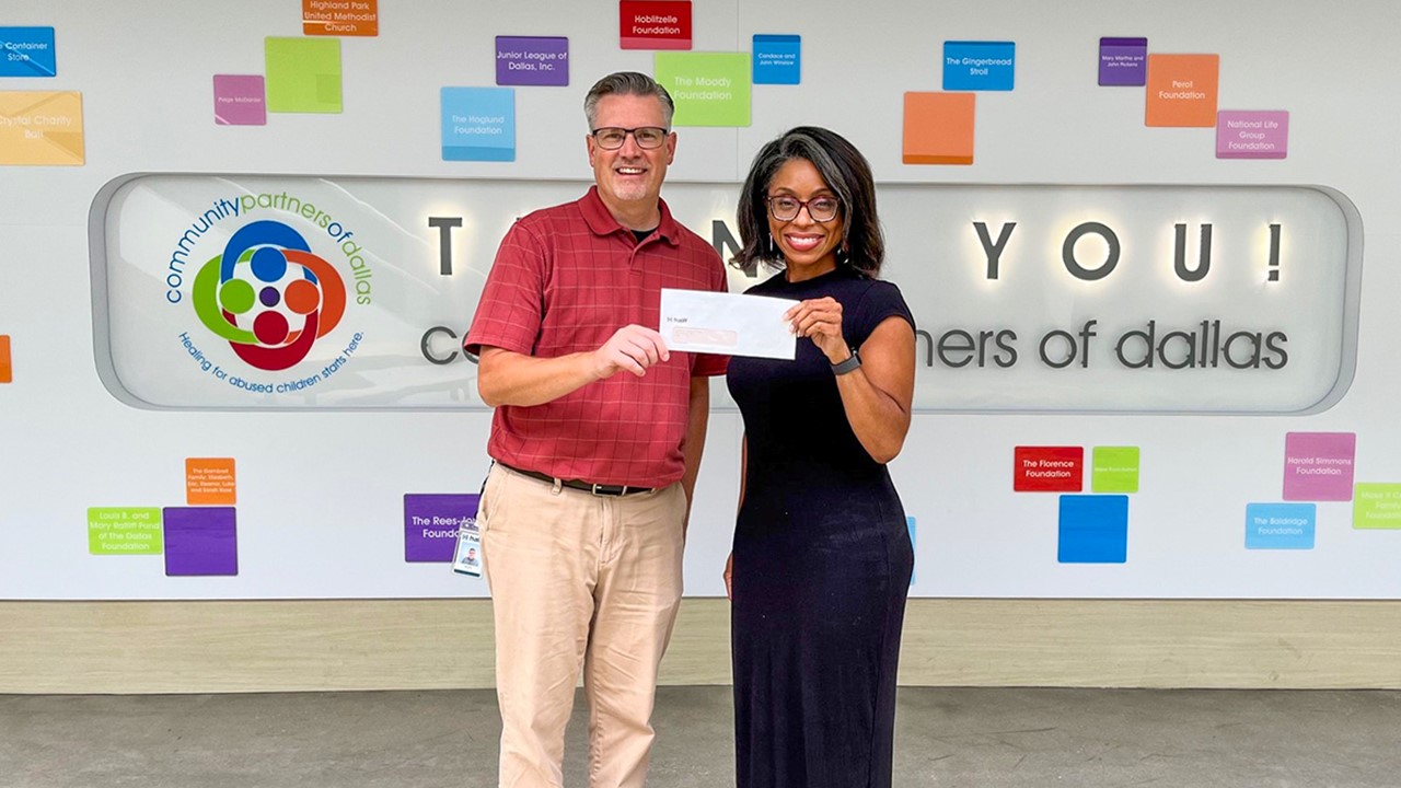 Richardson volunteers presented a $1,000 donation to Community Partners of Dallas to help provide school supplies for children in need.